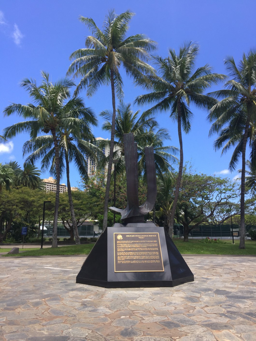 On one of my most recent “long” walks, I came across the Fort DeRussy Armed Forces Recreation Center. The location is the home of the Hale Koa Hotel (House of the Warrior) an 817-room, world–class resort hotel and favorite R&R destination for our country’s military personnel. The US Army Museum of Hawaii is also there.