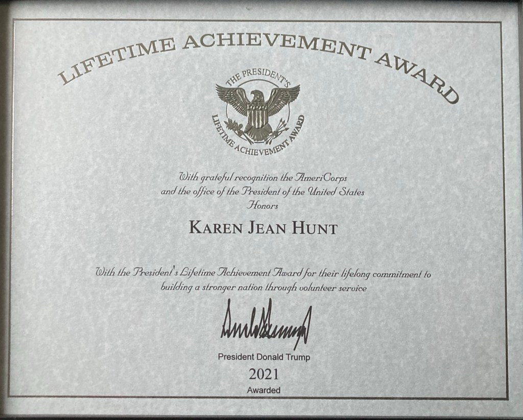 Wait, there’s more! Earlier in the year, I received an email that read: “Dear KJ, I would like to nominate you for a President’s Volunteer Service Award for Lifetime Achievement.”