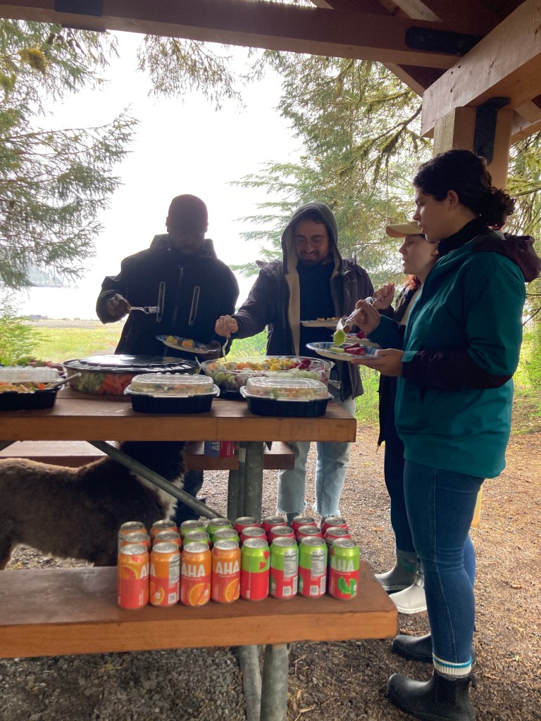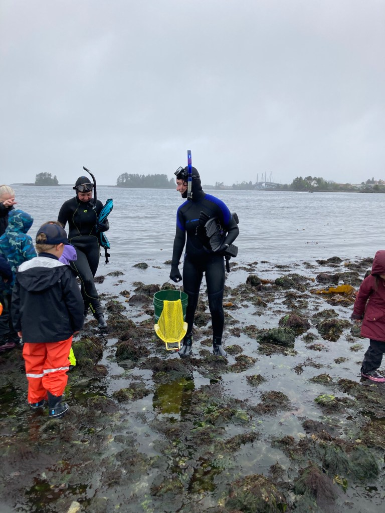 Staff from the science center swam over, collecting items along the way. The catch was then placed in a touch pool.