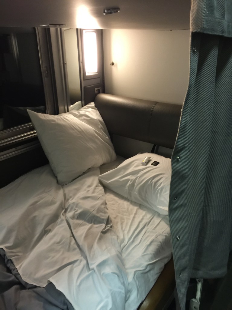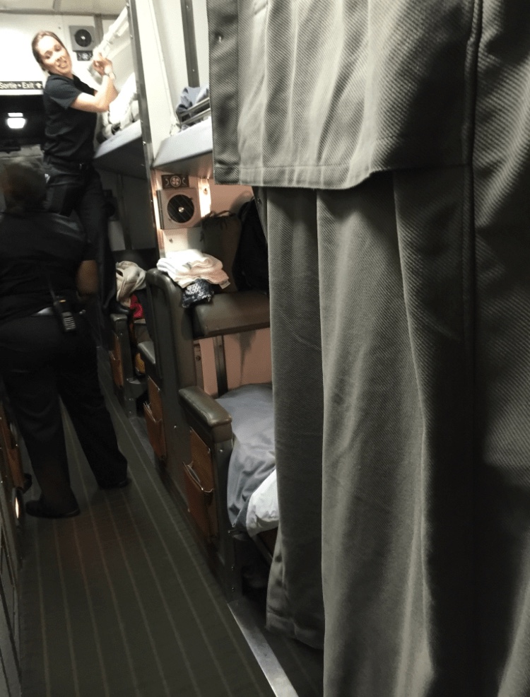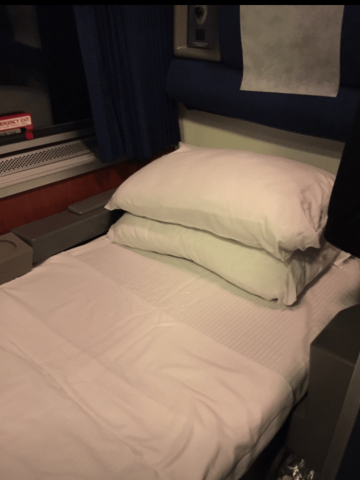 On Amtrak, I had a room that locked. Each night, while I was away having dinner, the seat in my private room was converted into a bed.