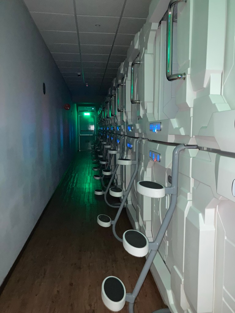 Check-in wasn’t a problem. I received my key (needed for everything) a towel, earplugs for the tv, sock to wear around the property (all shoes must stay in your locker), and earplugs. The issue was getting set up. The WiFi code didn’t work, so I used my GloCalMe hotspot. This was the second time this purchase saved me. The first was needing WiFi to complete my ArriveCAN paperwork, while on the bus from Seattle to Vancouver, heading to the US/Canada border. Yesterday wasn’t that big of a deal. It was just that after getting into the pod, I didn’t want to get out again, walk to the front desk, and ask about the WiFi password. I just wanted to sleep.