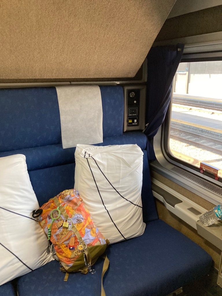 It’s hard to believe that I slept better in business class, on the way up, but it’s true. There was a crack in the metal door separating my room from my neighbor’s. I could look in and see him. When I heard him addressing the issue with our attendant, I joined in the conversation. I offered to undress closer to the toilet/shower combo in my room. We all had a good laugh with that one. After two nights in the sleeping pods, I’m not sure why I didn’t remember to sleep with earplugs. I woke up at almost every other stop, from Seattle to Los Angeles. Sleeping aside, the highlight of sleeper class is supposedly the three daily meals. The breakfast choices were ok, lunch was to be avoided, and dinner’s saving grace was the fact that it came with an alcoholic beverage.