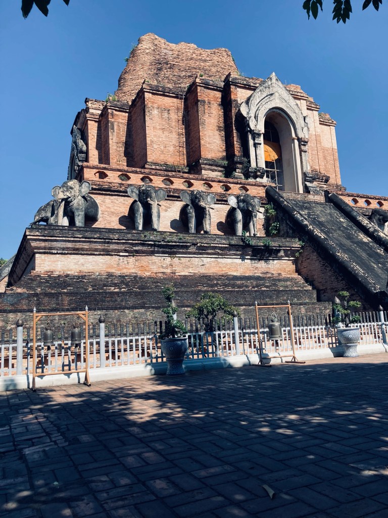 Wat Chedi Luang is just steps down the road from Wat Phantao. There’s a 50 Baht entry fee. Clothing is provided, for free, if you’re not dressed properly.