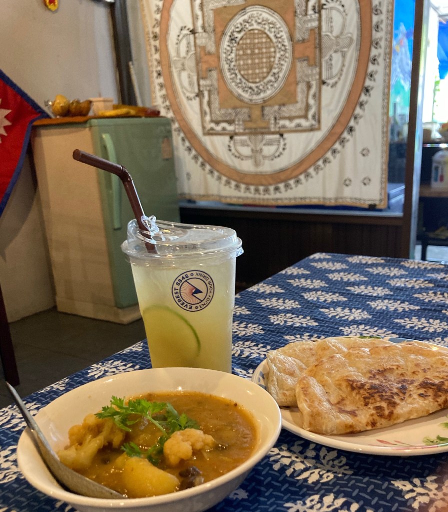 So, …. having a restaurant directly across the street from the hotel isn’t close enough? Perhaps, the restaurant has recently opened. This was the case for Everest 8848, a new restaurant, offering nepali food. It’s a five minute walk from the hotel. Now granted, if you’re not adventurous and willing to walk down a narrow alleyway, with motorbikes, cars, and dogs, maybe there really isn’t that much, nearby, for you to eat.