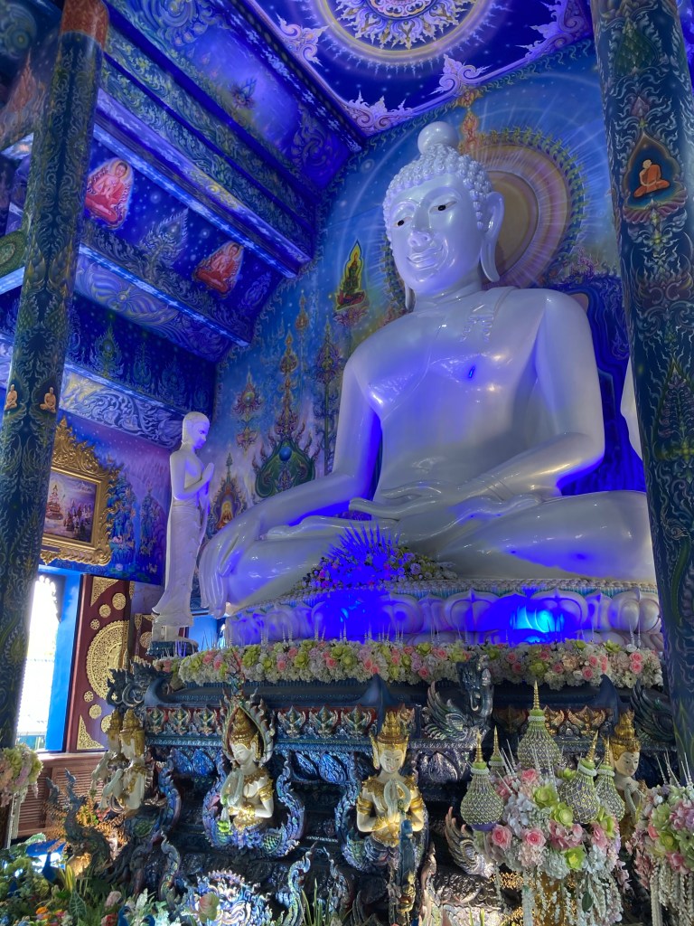 So, I decided to make my own way to the Blue Temple. It’s only a 40 minute walk from my hotel. Don’t worry. I didn’t walk. I opted to take a ride share (Grab). The cost was 78 Baht, but I gave the driver 100 (less than $3.00).