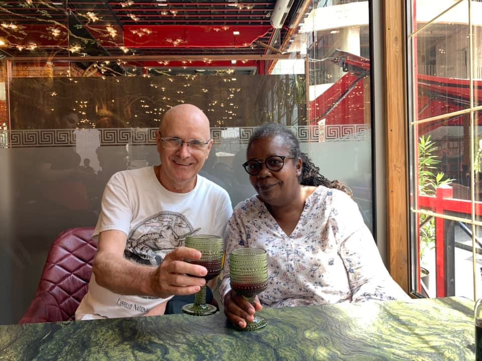 When I was in Yerevan last May, my friend Jim suggested that I ask Peace Corps Armenia for permission to attend the swearing in ceremony for the new cohort. I did and was also invited to come by the office, meet the trainees (swearing in the next day as volunteers) and to help paint the mural at headquarters. Jim was also there, along with two other local Returned Peace Corps volunteers. We were then asked to add our hand prints to the wall. On this most recent trip, I caught up with Jim. We both share the same dentist.