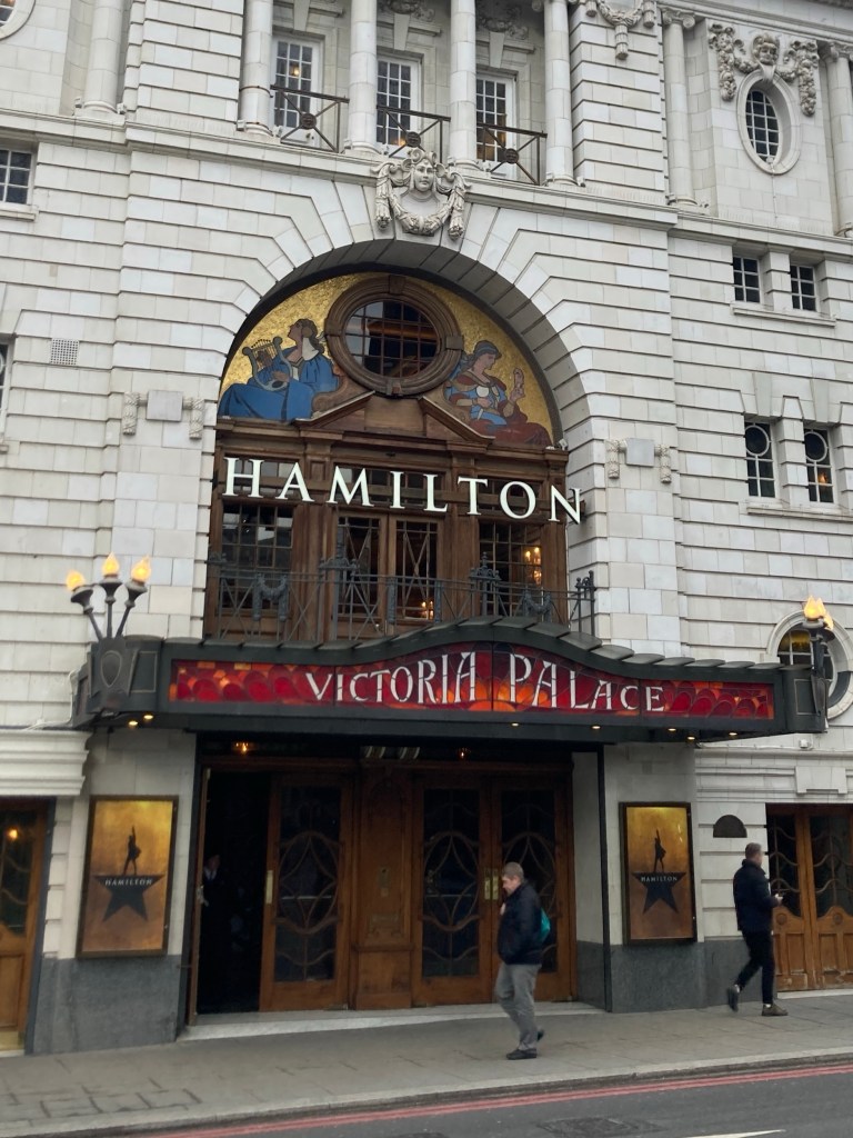 Before leaving London, I decided to attend a play. I selected a West End matinee of Hamilton. The Victoria Palace Theatre is just steps away from the Victoria Underground Station. After walking half a block, I made it to the theatre and purchased a same day ticket. I walked across the street, to a coffee shop, and waited for the doors to open. My seat was towards the back of the orchestra level, but was a really good seat.