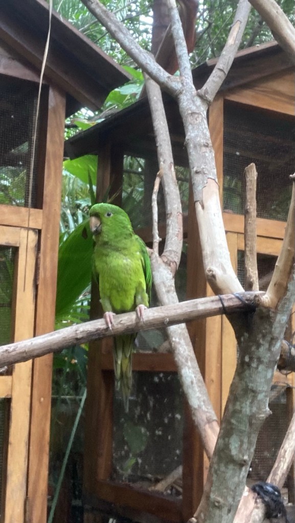 My room was up one flight of stairs, just behind the caged monkeys. The cages for birds on the property were kept opened, during certain periods of the day. The complimentary breakfast was served on the beach patio. The gang of dogs hanging out on the sand or in the restaurant were the best part of my beach stay.