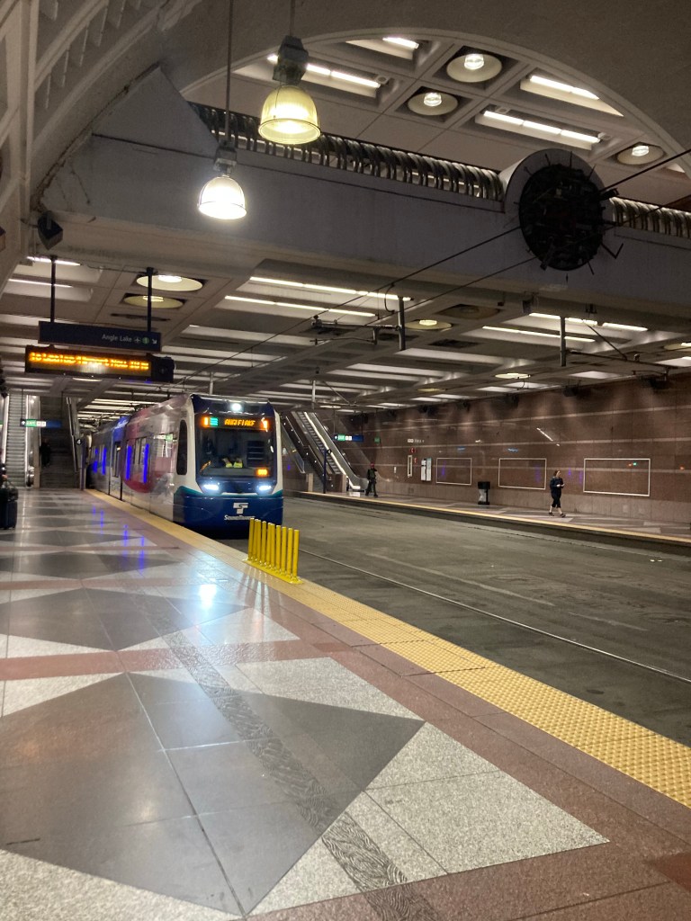 We arrived back to Seattle the next morning. I was able to leave early, as I carried my own luggage off the ship. I walked up hill, to 3rd Street, and hopped on a bus going to the Pioneer Square light rail station. The bus was free, because the driver was nice. I didn’t have any cash and the bus didn’t take credit cards. I was able to use my card, at the rail station, to purchase my ticket to the airport.